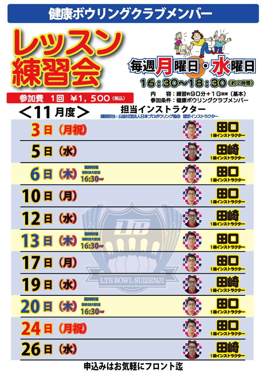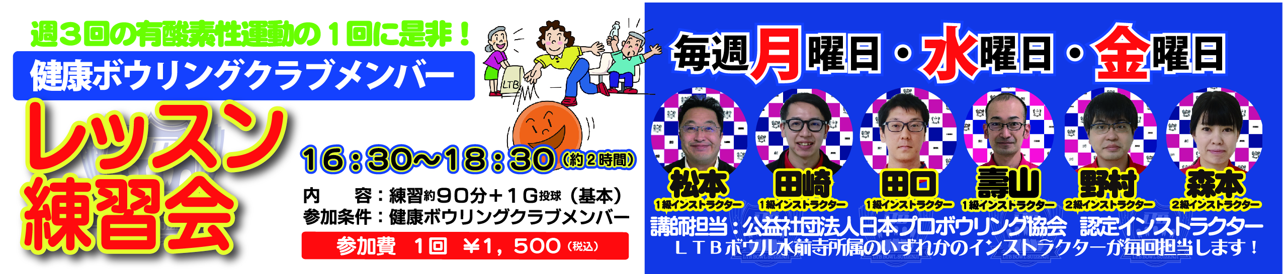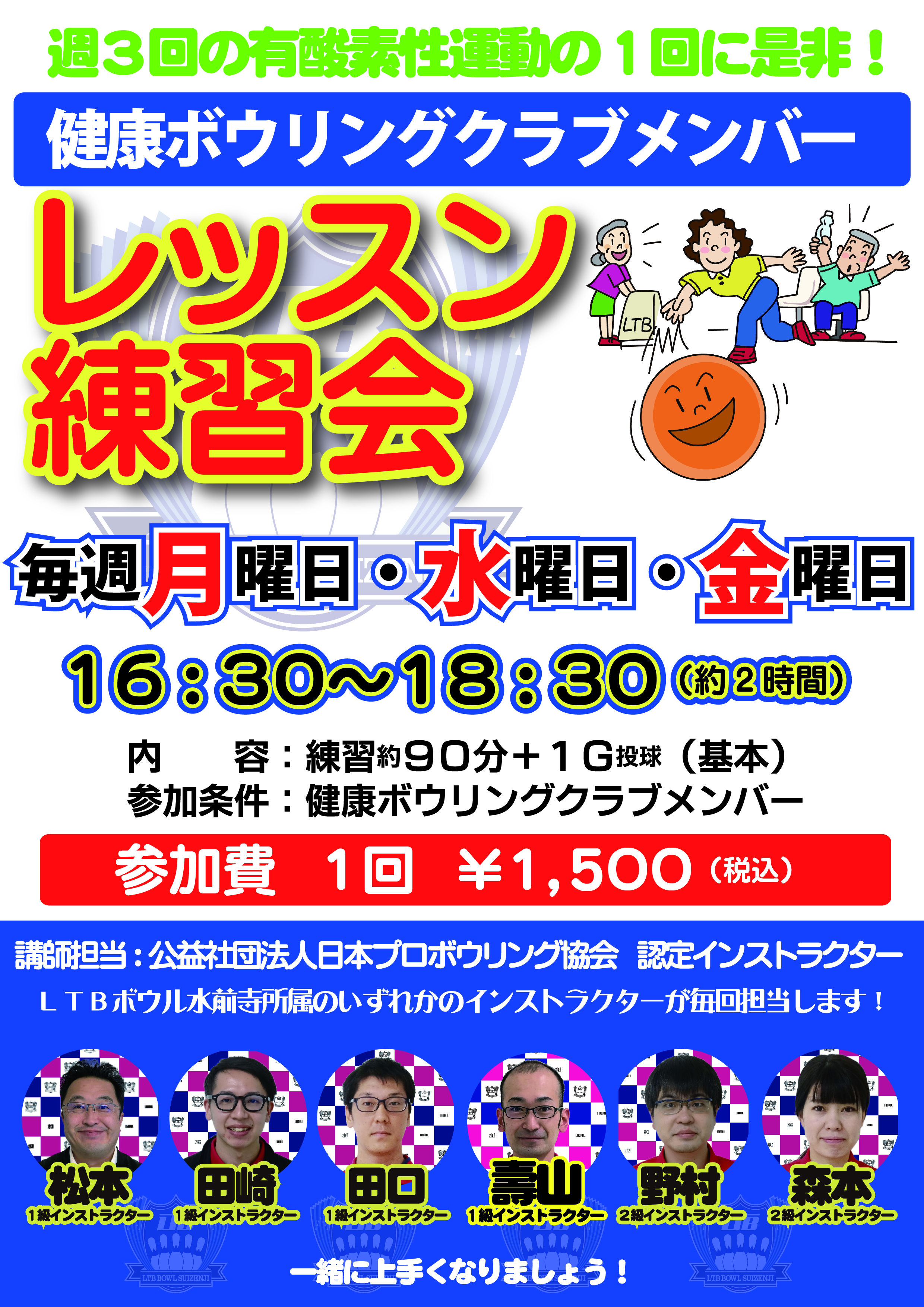 健康ボウリングクラブのみなさん限定のお気軽に参加できる練習会!インストラクターの指導付きで練習時間もたっぷりあるのでとってもお得ですよ!