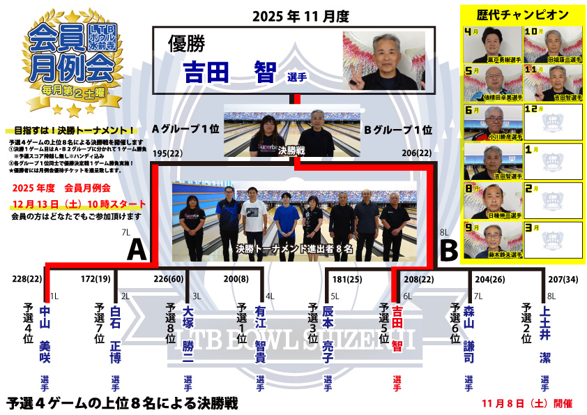 2025年11月8日 【イベント】11月度会員月例会結果(優勝は吉田智選手!)