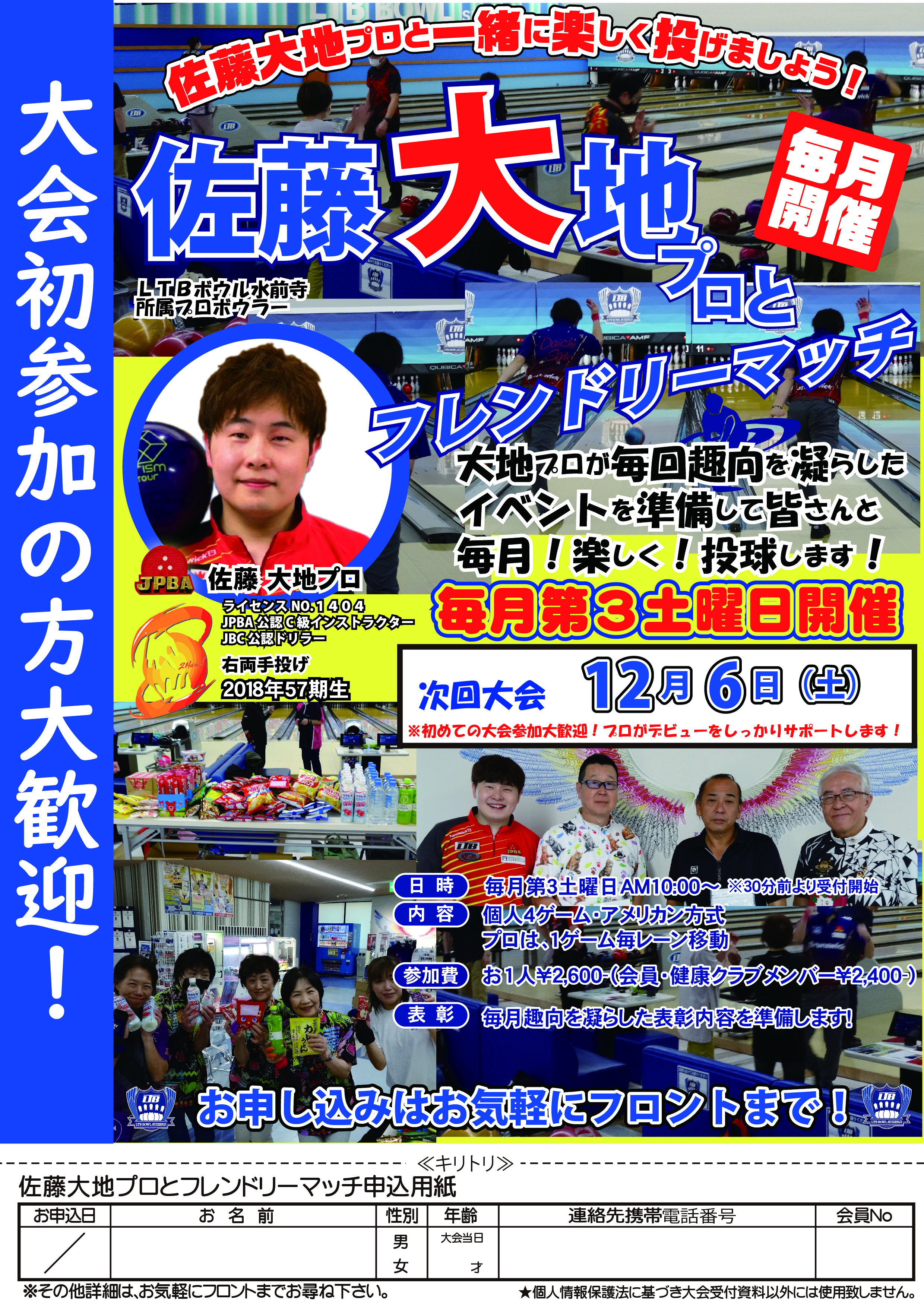 LTBボウル水前寺で楽しく毎月月例会実施中!フリー体験参加もできます!!年に数回、矢島純一プロも月例会に参加してます!